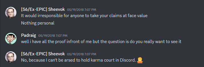I won’t deny that some reports were bogus; some of the ones that don’t even feature screenshots for starters – with two particularly leading to a feud between two parties. SRT was far from perfect and I do think there could have been some more enforcement especially in the late 2010s – something even Epic themselves could have fixed easily but barely tried besides banning those two clowns who stirred up the family feud with no evidence on either side. however there were still plenty more that did have screenshots and they were more than just “3 proper reports”. Even a few bad reports do not discredit a forums thread of justice, particularly accounting for 4 of my own reports which had substantial evidence on all of them.